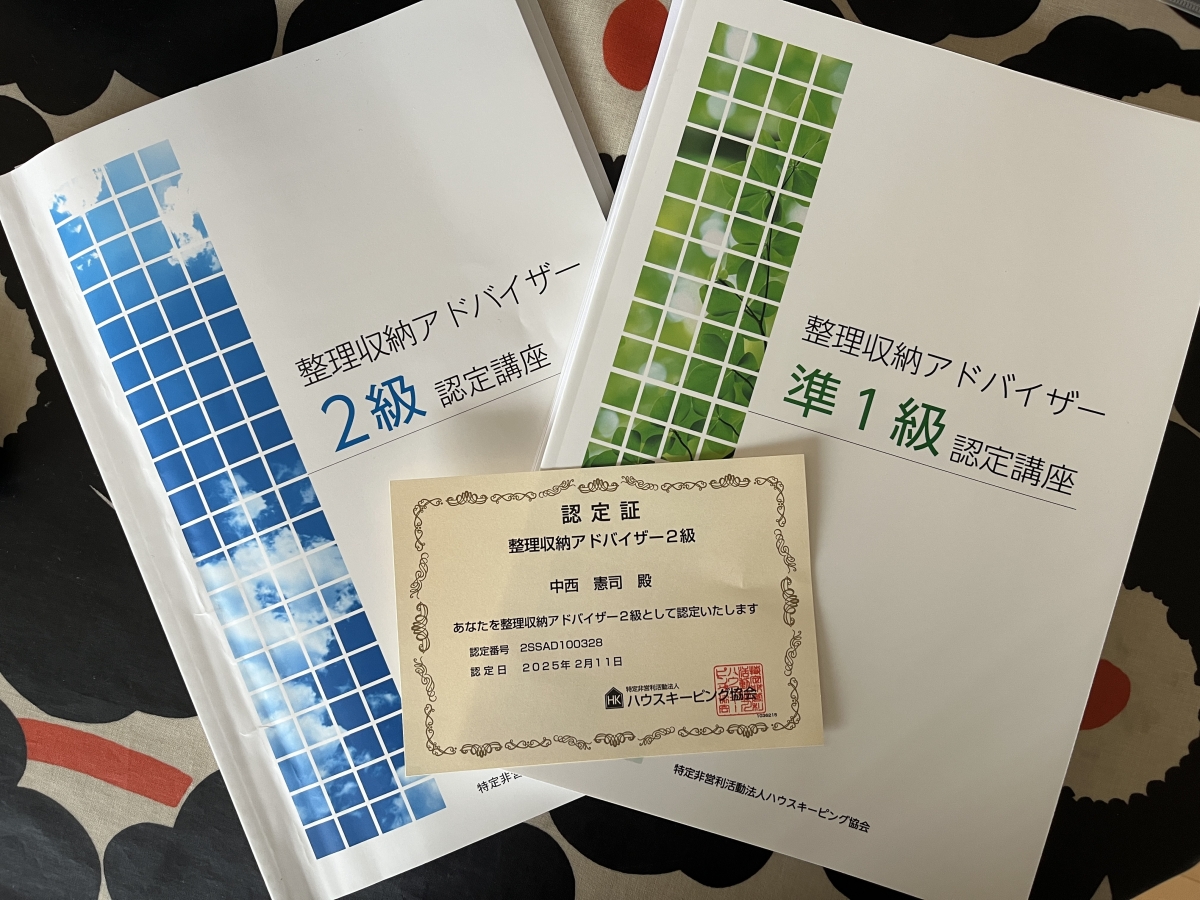 さて、先日、整理収納アドバイザー2級を取得しました。
