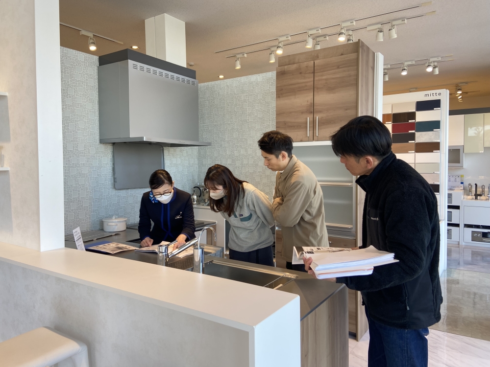 ショールームでの時間は、キッチン、お風呂それぞれ、水洗は何が良いか、食洗機はどのタイプが良いのか、天板の素材や換気扇の仕様、浴槽の形や床のデザイン、ドアの種類、鏡、カウンターなどなど