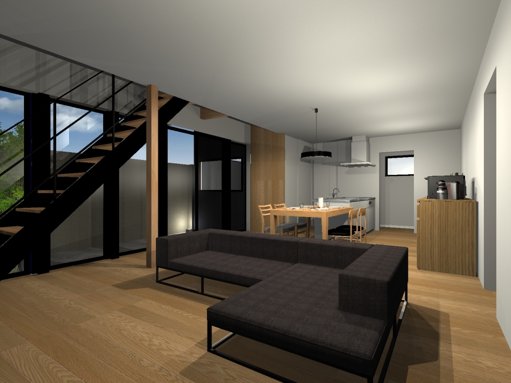 今回はリビングの吹抜けに掛かる鉄骨階段。