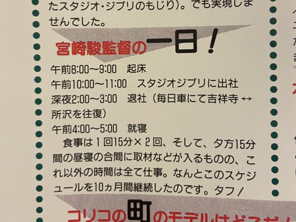 そしてそこに、「宮崎駿監督の一日!」という紹介があったのですが