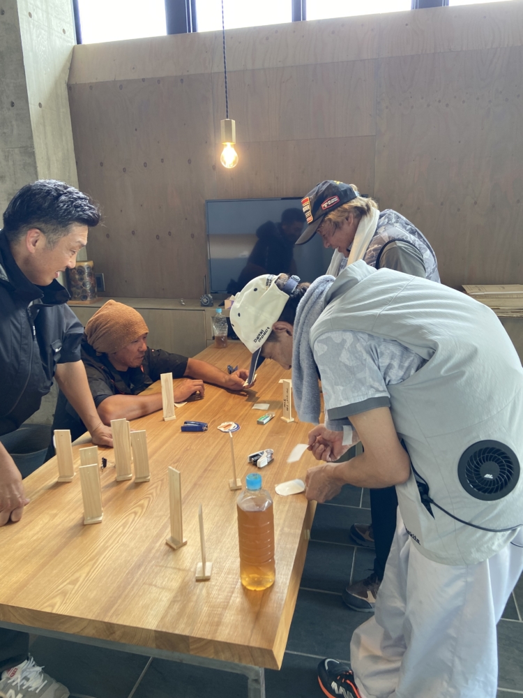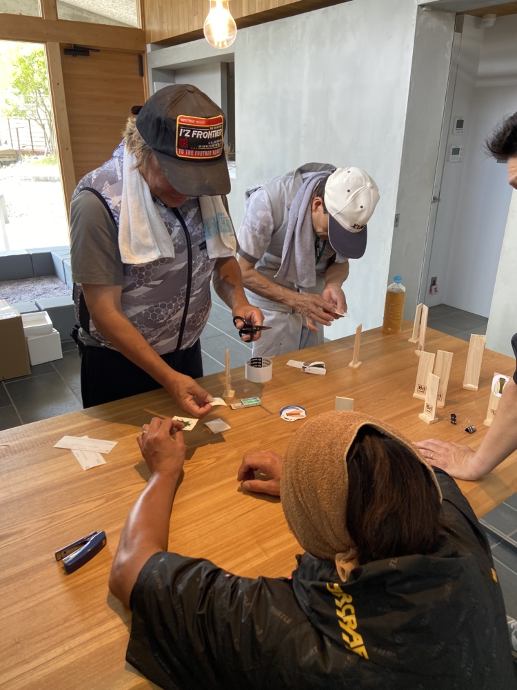 こちらは、SDGs工作ブースで準備中の、山﨑大工さん、松坂木材さん、Art玉分さん、中川木工さん。