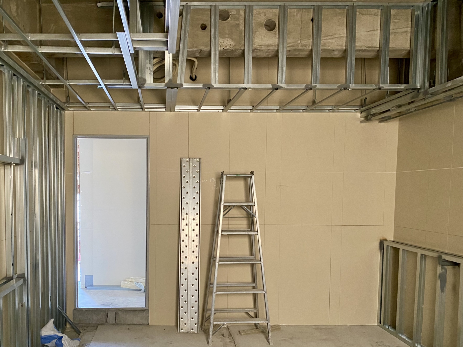 室内の間仕切り壁のLGSが施工された