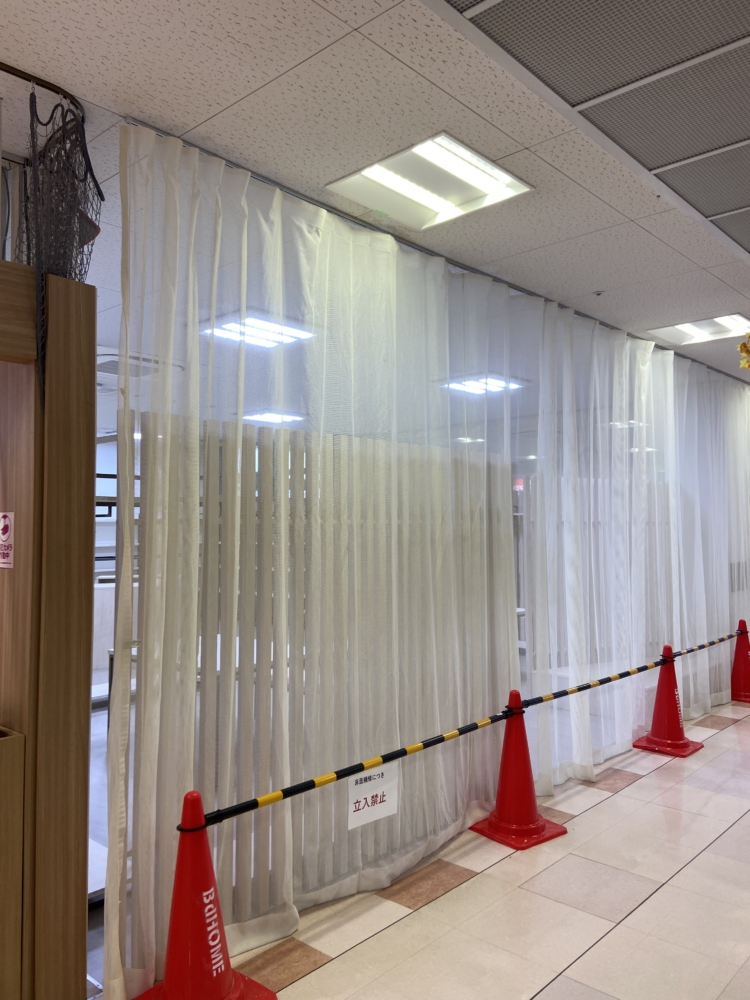 お店にカーテンレールが取り付けられ、予定していた作業は全て完了しました。
