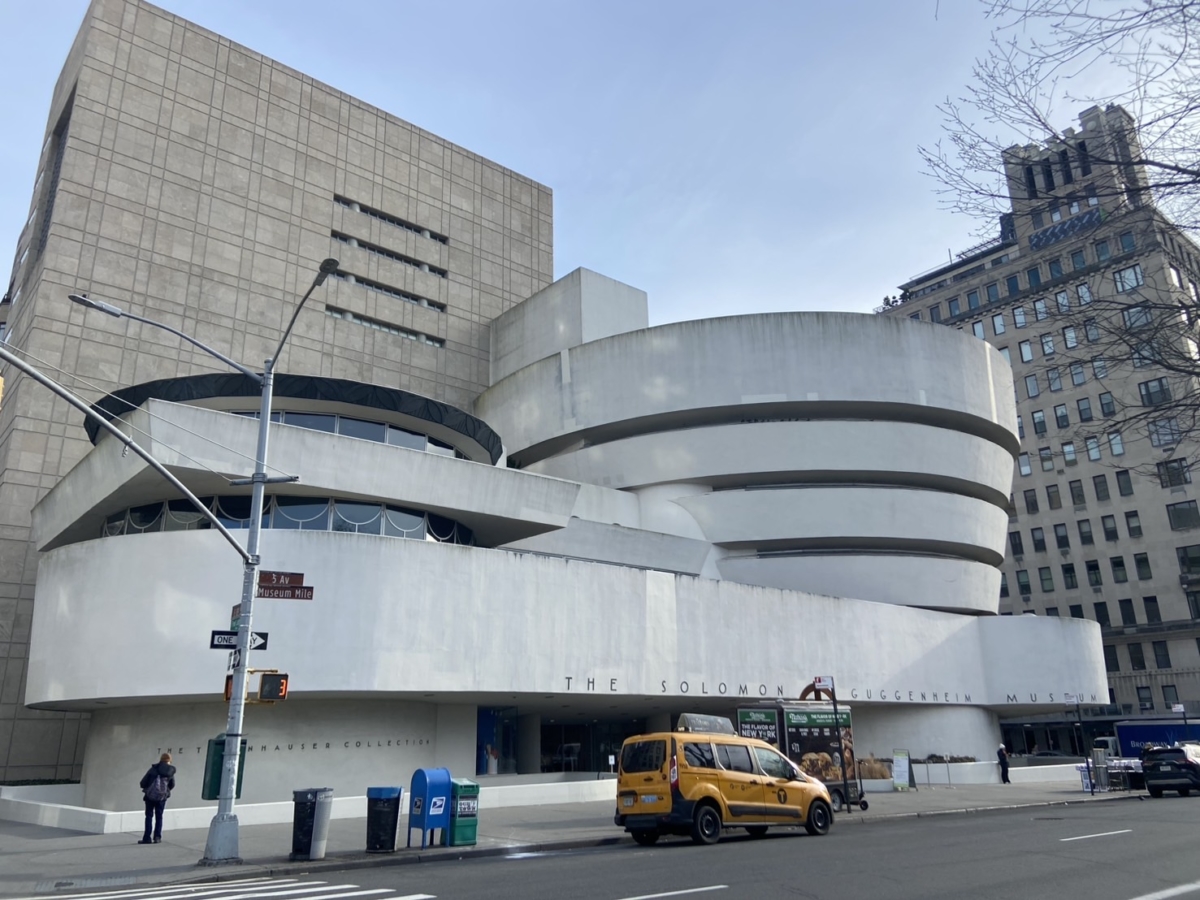 建築家フランク・ロイド・ライトが設計した、らせん状の外観が印象的な美術館です。