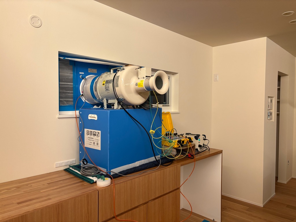 本日は、間もなく完成を迎える伊勢市S様邸にて、社内検査と気密測定を行いました。