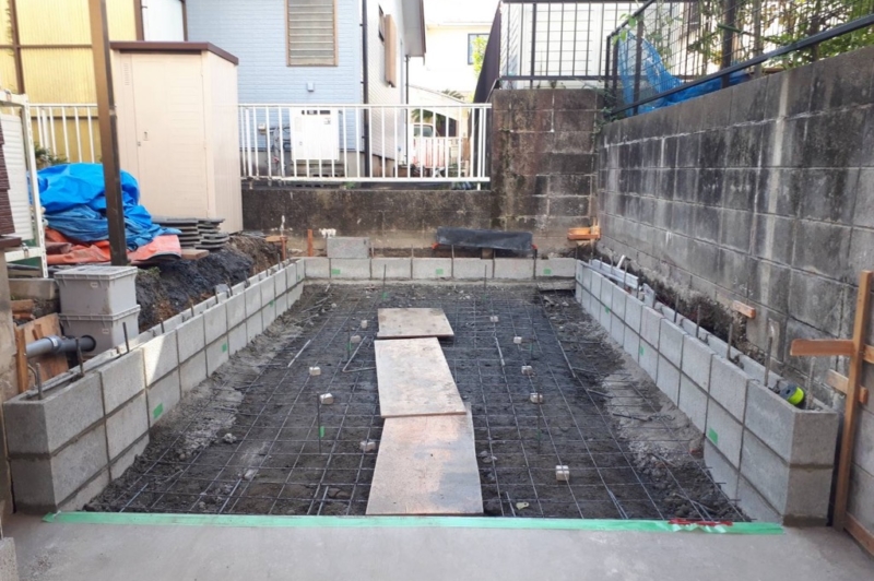 基礎には基礎の耐久性を高めるため、鉄筋が埋め込まれています。建築基準法では鉄筋と鉄筋の間隔は30cm以内とされていますが一軒一軒お家の大きさやデザインはもちろんちがいます。