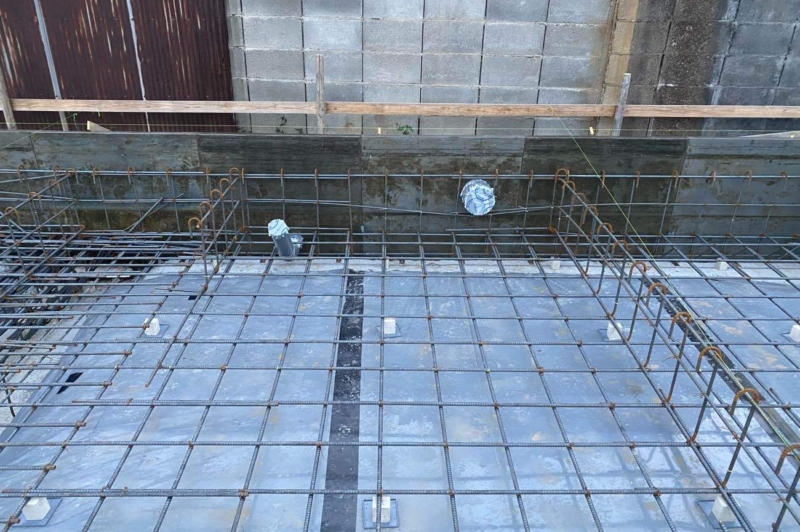 基礎には基礎の耐久性を高めるため、鉄筋が埋め込まれています。建築基準法では鉄筋と鉄筋の間隔は30cm以内とされていますが一軒一軒お家の大きさやデザインはもちろんちがいます。